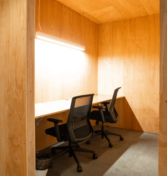 Postos fixos numa zona tranquila de open space (Piso 0), com luz natural e acesso direto à Phone Booth insonorizada — totalmente equipados e sempre prontos.